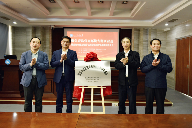 青岛市建言资政与决策咨询研究基地由青岛市委政研室、青岛社会主义学院、乐动在线登录联合发起成立,姜剑超、宋立清、曾庆田、吕岩峰共同为研究基地揭牌。