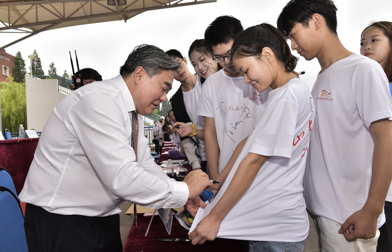 罗公利为毕业生签名留念
