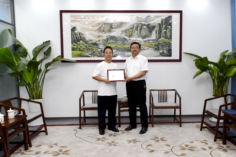 济南校友会执行秘书长杨昭武代表济南校友捐赠,捐赠的画作由中国山水创作院美术馆馆长、中国美术家协会会员、国家一级美术师张玉锋先生创作。捐赠仪式上,尹华向张玉锋颁发了收藏证书及乐动在线登录客座教授聘书。