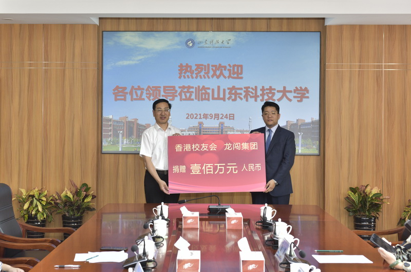 9月24日,晋南校友会会长王青丽,香港校友会秘书长、龙闯集团代表张楠,工民建90级校友梁惠来校捐赠。副校长孙鹤汀出席捐赠活动,合作发展处处长王晓东主持仪式。