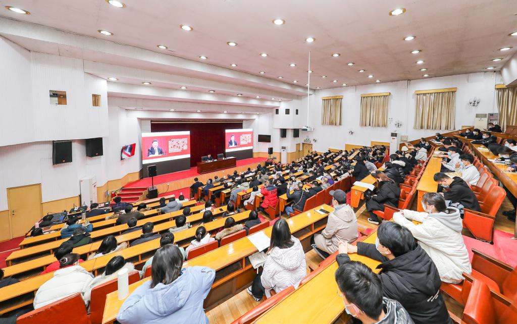 泰安市政府党组成员、秘书长李华民,市教育局局长戴冰,市政府研究室主任杨建全等参加活动。学校离退休老领导、泰安校区科级以上干部、党支部书记、思政课教师、学生工作干部、学生代表近300人聆听宣讲。(通讯员:刘钦兴 摄影:任卫兵 责编:徐展)