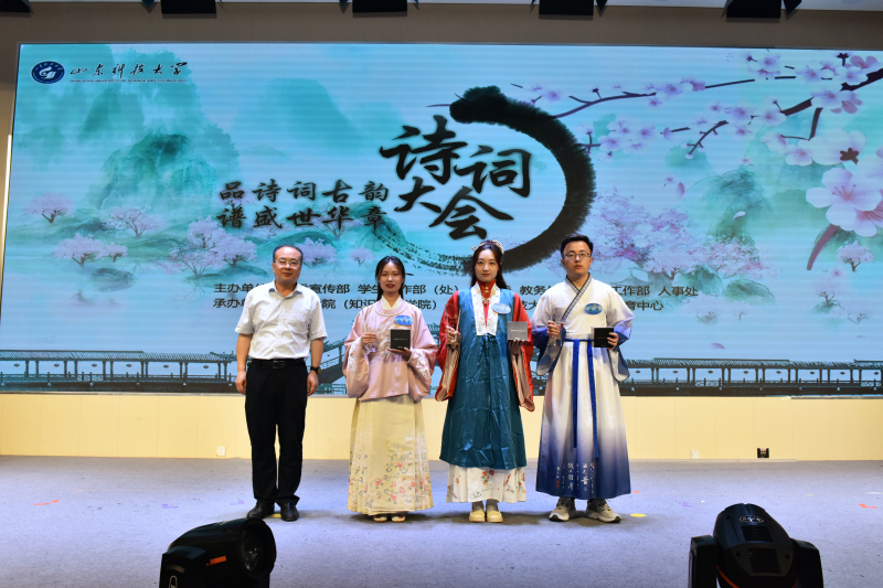 5月28日,乐动在线登录人文素质教育中心成立仪式暨“品诗词古韵 谱盛世华章”诗词大会举办。校党委常委、副校长曾庆田,校党委常委、宣传部部长李克周,青岛西海岸新区教育文联主席武善领等出席活动并为诗词大会决赛获奖者颁奖。