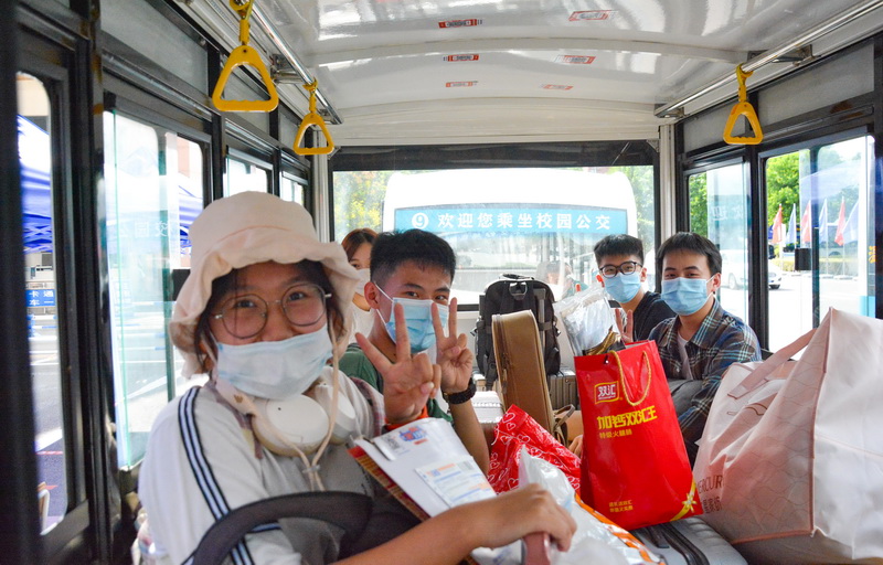 校园公交运送新生直达学院报到点(摄影:苑哓彤)