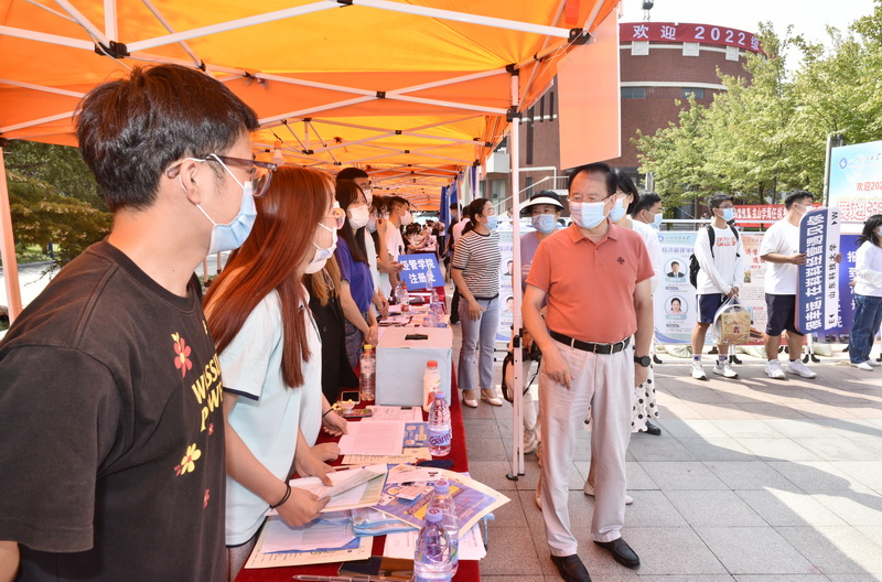 罗公利、姚庆国看到现场工作人员和志愿者们忙碌的身影和井然有序的报到现场,为各部门、各学院为迎新所做的细致周到的服务“点赞”,不时叮嘱他们要从严从细落实迎新期间疫情防控各项规定,做好周到细致的服务,让学生暖心、家长满意。