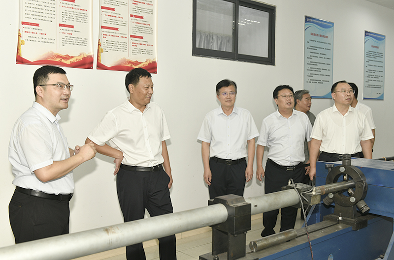 会见结束后,张广宇一行在副校长徐龙飞、校友总会会长姚庆国陪同下来到矿山岩层智能控制与绿色开采国家重点实验室培育基地,听取实验室负责人介绍。