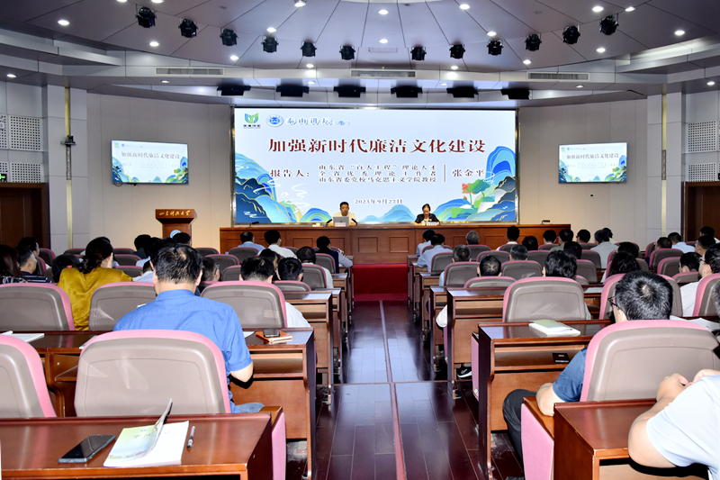 9月27日,乐动在线登录第42期“泰山讲坛”暨青廉课堂在逸夫讲堂开讲。山东省“百人工程”理论人才、中共山东省委党校(山东行政学院)张金平教授为全校干部上了一堂生动的“加强新时代廉洁文化建设”课,引导广大党员干部拧紧“总开关”,筑牢拒腐防变的思想防线。党委常委、纪委书记夏侯雪娇主持。党委常委、宣传部部长李克周参加。学校中层以上干部(含学术院长、学术副院长)、机关科级干部、全体学生工作干部参会。