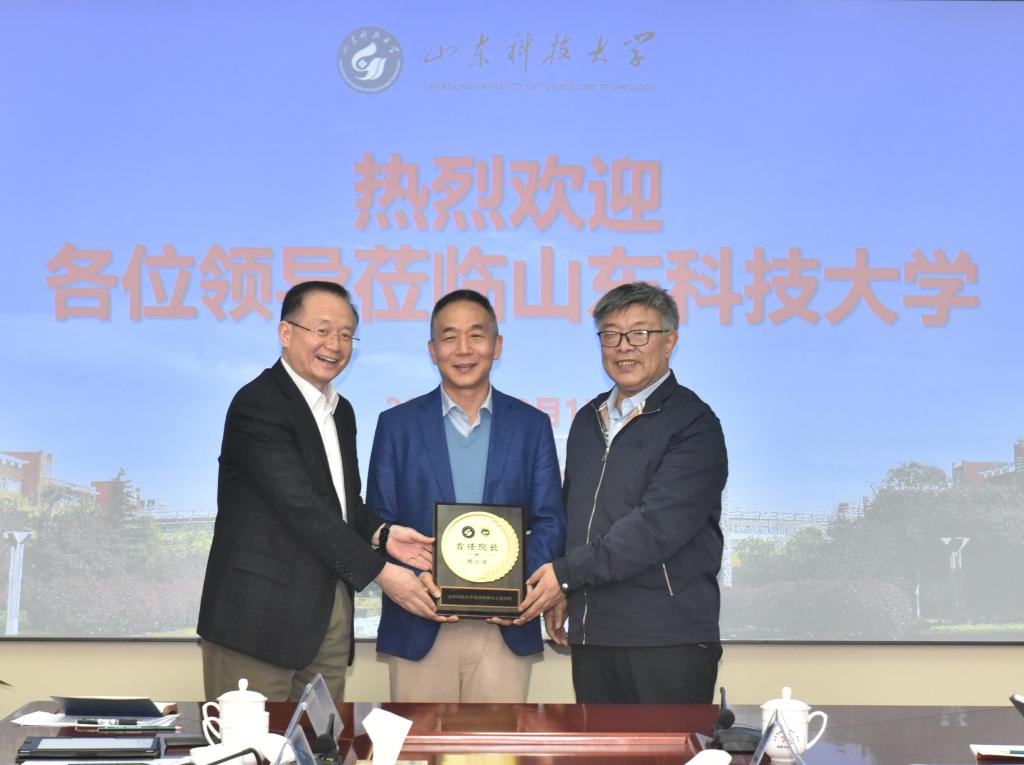 签约仪式后,罗公利、李铁刚向海洋学院院长周兴华颁发纪念品。