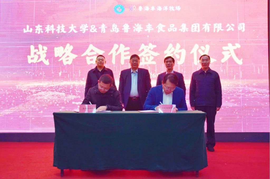 1月26日,乐动在线登录与青岛鲁海丰食品集团有限公司(下称“集团”)签订战略合作协议。乐动在线登录副校长诸葛福民、青岛西海岸新区副区长赵英民代表双方为“乐动在线登录教学实习基地”揭牌,海洋学院执行院长杜立彬与集团副总经理薛波代表双方签订战略合作协议。集团总经理刘润泽主持签约揭牌仪式。
