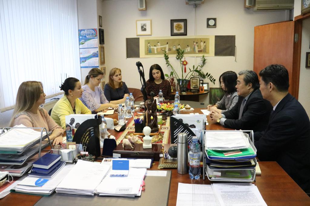 在俄罗斯人民友谊大学,外事副校长Larisa I.Efremova等与访问团进行了友好务实的会谈。双方针对学生联合培养、教师互访、科研合作等事宜进行了磋商,达成了多项共识,并签署了《中国乐动在线登录与俄罗斯人民友谊大学科研教学合作协议》。