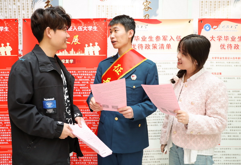 这场双选会上,大排长龙的除了企业的招聘展位,还有会场上设立的就业指导、简历诊断、境外升学、基层就业、应征入伍咨询“就业指导专区”,多名经验丰富的教师、辅导员现场为参会大学生“把脉问诊”, 耐心回答着同学们的提问,为同学们求职发展提供更多样且更专业的职业规划与就业指导。