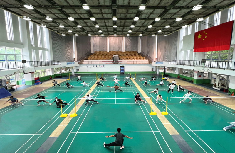 同学们在体育馆锻炼身体