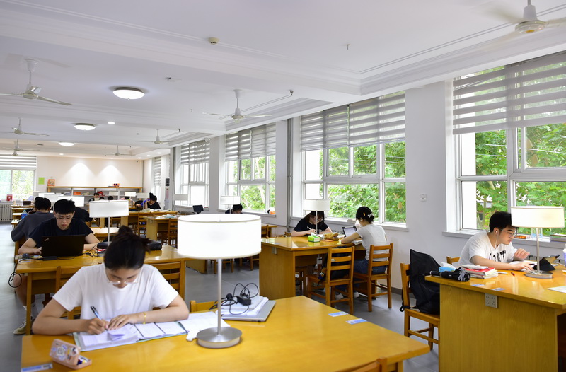 同学们在图书馆一角阅读