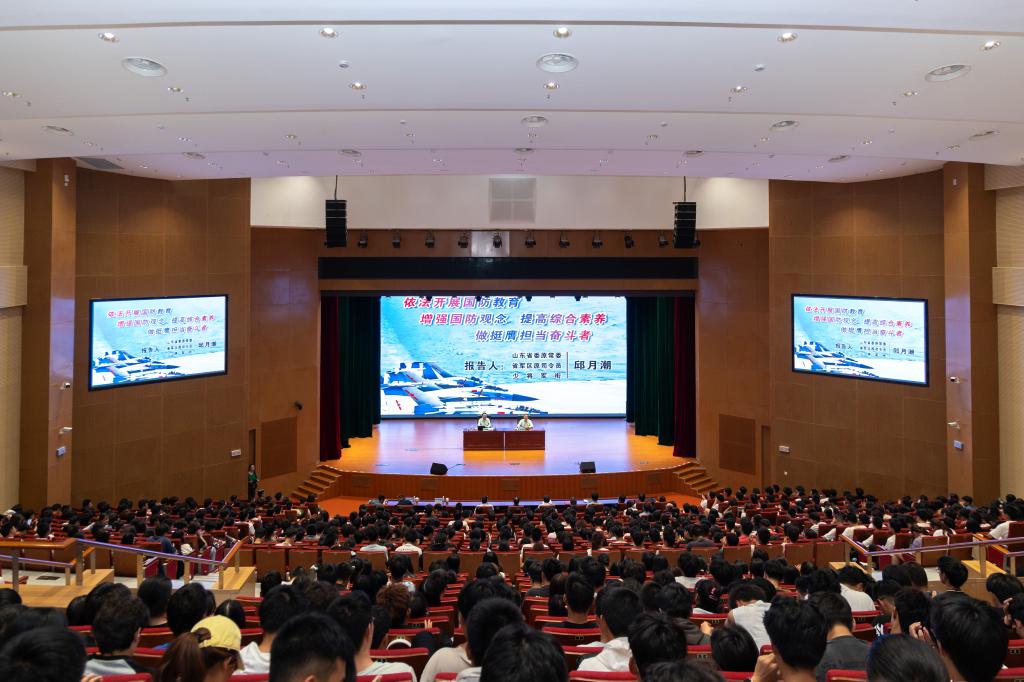 报告会上,邱月潮以“依法开展国防教育 增强国防观念提高综合素养 做挺膺担当奋斗者”为主题,简要介绍了《国防教育法》修订的有关情况,并结合自己40多年的军旅生涯,从“为什么要建设强大国防,为什么要加强国防教育”“怎样建设强大国防”“广大青年学生要自觉加强国防教育、提高综合素养”等方面,为现场师生作了一场精彩的国防教育专题报告。邱月潮号召广大青年学生自觉加强国防教育,提高综合素养,做到“六要”:一要坚定理想信念,二要厚植家国情怀,三要砥砺意志品质,四要培养崇文尚武精神,五要丰富思想文化内涵,六要强化责任担当,为中华民族伟大复兴汇聚磅礴青春力量。