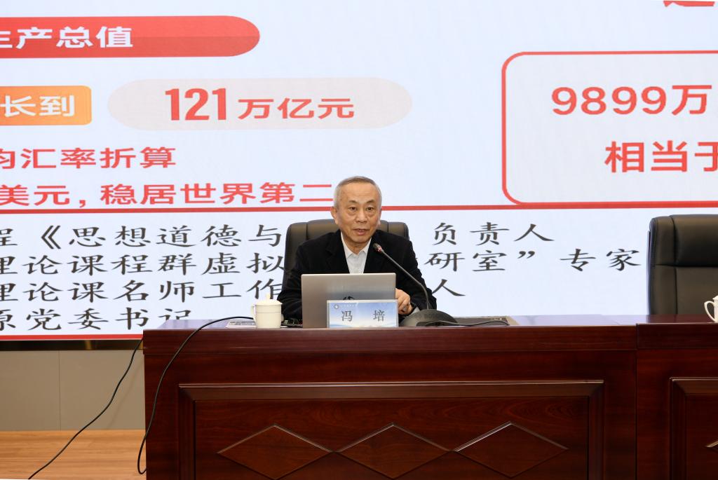 冯培围绕学习领会习近平总书记在全国教育大会上的重要讲话精神,紧扣“做好新征程上培养什么人、怎样培养人、为谁培养人”这一建设教育强国的核心课题,从牢牢把握“做什么”“怎么做”的逻辑主线和思想方法入手,从战略思维、辩证思维、系统思维、创新思维、底线思维5个维度,阐释了如何在“怎样培养人”上着力。讲解过程中,冯培引用大量实践工作中的案例、数据,进行了层层递进、深入浅出的理论讲解,让广大师生深刻领会了当前做好育人工作的必要性和重要性,报告发人深省、催人奋进。
