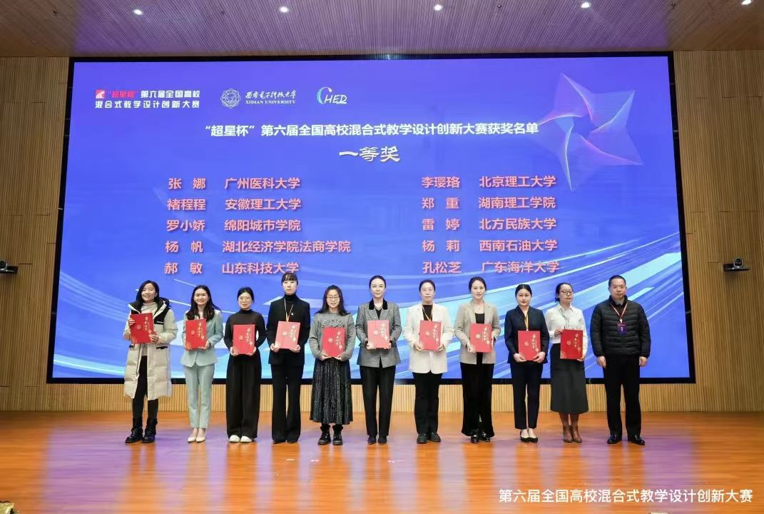 12月28日至29日,由全国高校混合式教学设计创新大赛组委会、中国电子教育学会主办的第六届全国高校混合式教学设计创新大赛在西安电子科技大学举办。乐动在线登录经管学院郝敏教师团队、海洋学院陈光源教师团队获全国一等奖,郝敏教师团队还获该赛事“人工智能+”专项奖,公共课教学部马芳芳教师团队获二等奖,学校连续两年获优秀组织奖。