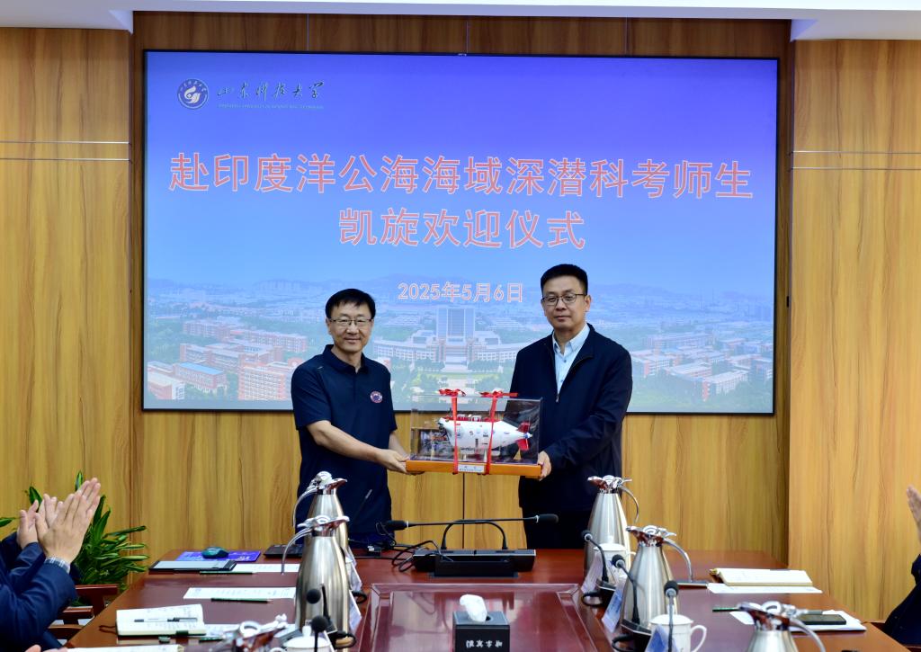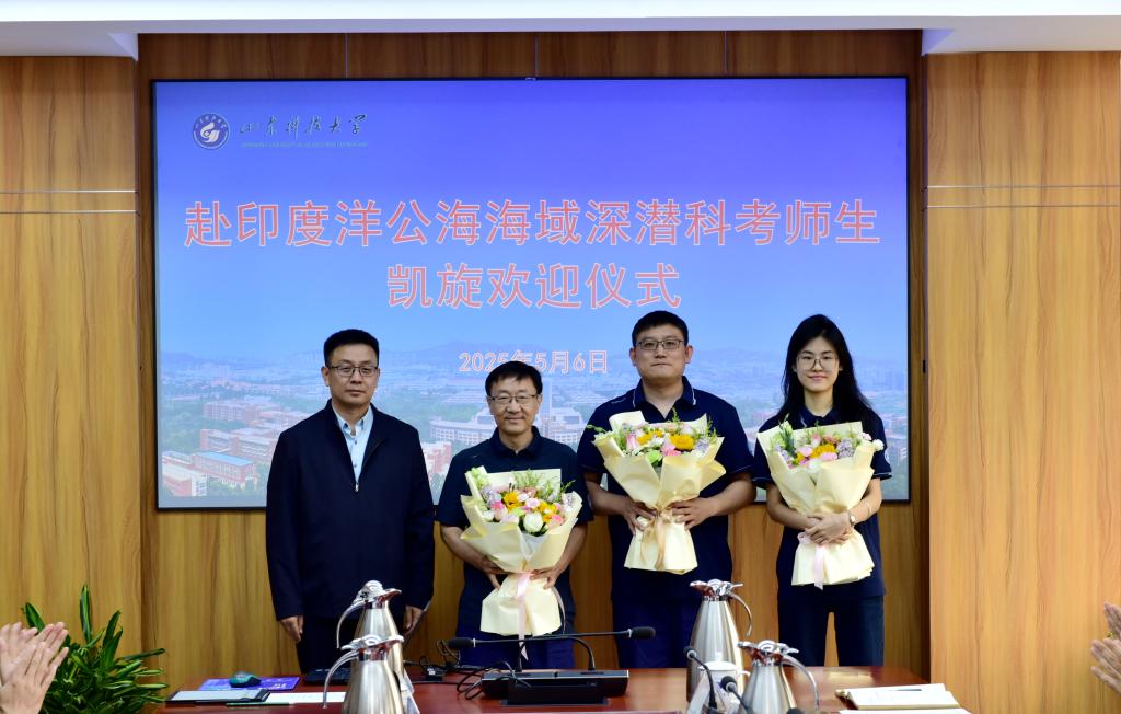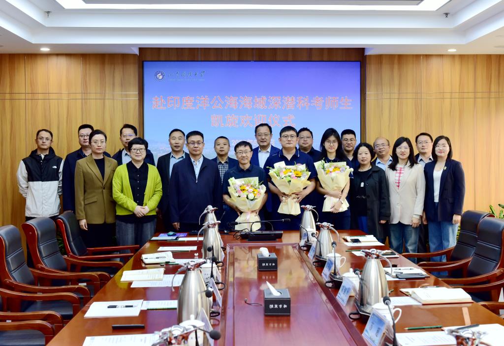 在学校举办的赴印度洋公海海域深潜科考师生凯旋欢迎仪式上,副校长陈绍杰慰问凯旋师生,对他们顺利平安归来表示衷心的祝贺,希望他们能继续努力,在未来的深海探索中取得更多成果,为国家的海洋科学研究事业贡献更大力量。