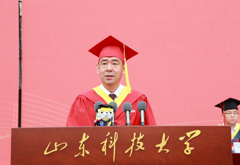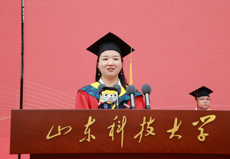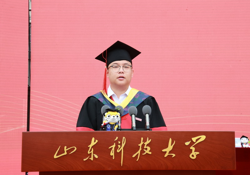 毕业生代表、安全学院郭立典深情回忆了在科大的美好生活,感谢老师们以灯传灯的悉心指导、同窗间相互扶持的真挚情谊,表示将把在母校所学化作投身服务国家建设发展的磅礴力量。