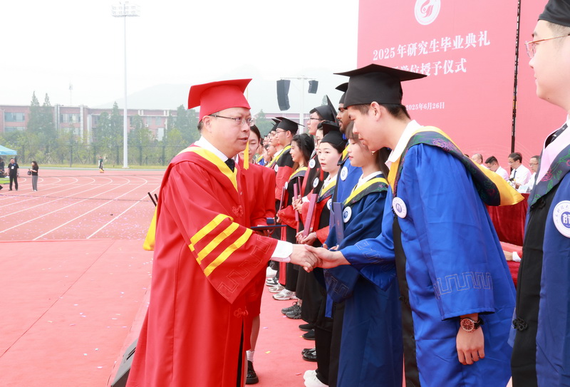 在学位授予仪式上,校领导依次为博士、硕士毕业生拨穗、授予学位并合影留念。仪式现场庄重而温馨,见证着学子们多年耕耘的硕果。毕业生分别为导师送上鲜花,感恩师长在学术道路上的谆谆教诲。(记者:韩洪烁 责编:郭菁荔)
