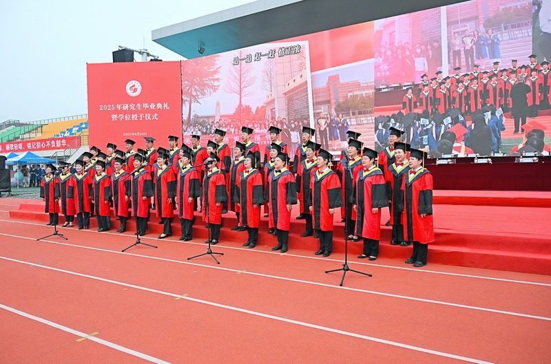 毕业骊歌唱响,青春扬帆远航。典礼上,数十名毕业研究生献上精彩的暖场表演,用动情的歌声诉说着对母校的浓浓眷恋与对师友的依依不舍。由离退休干部、教工组成的金秋合唱团以合唱的形式为毕业生送来真挚的祝福。现场还播放了毕业生、师友的祝福视频,一句句祝福的话语、一帧帧动人的画面串联成一部即将谢幕的电影,播放着曾经的过往与成长,诉说着对未来的美好憧憬。