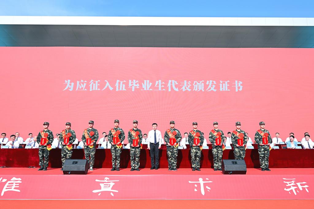 王君松为应征入伍毕业生代表颁发证书