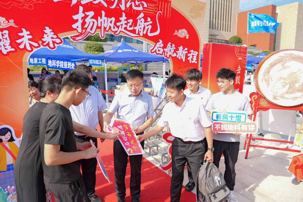新生们的憧憬与规划,为这场迎新活动注入了鲜活的青春力量。来自烟台的刘宇辉刚完成能源学院智能采矿工程专业的“打卡”,拖着行李箱逛校园时直呼“被规模惊到”,刘宇辉这样规划自己的未来:“期待四年过得充实又有意义,我的目标很明确——全力冲刺学业,力争顺利踏入研究生的新阶段。”