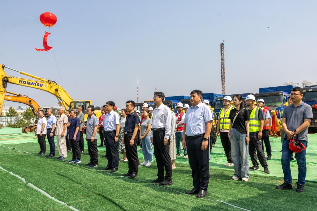 王君松、徐方全和各位领导、嘉宾共同为B1、B5学生公寓项目培土奠基,标志着该项目启动建设。