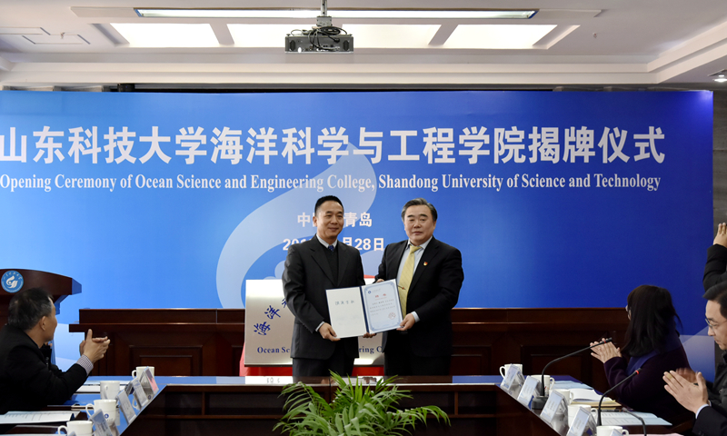 1月28日,由乐动在线登录与自然资源部第一海洋研究所共建的海洋科学与工程学院揭牌仪式在我校举行。山东省科技厅巡视员徐茂波,自然资源部海南测绘地理信息局党组成员、副局长张云,国家海洋局北海分局副局长窦月明,青岛海洋地质研究所副所长赵洪伟,青岛市委教育工委委员、市教育局总督学、党组成员李岷,西海岸新区教育工委副书记葛兆培,西海岸新区工业和信息化局副局长李云峰,国家深海基地管理中心副总工程师兼办公室主任丁忠军,山东省海洋局科技与对外合作工作组副处长齐士林,自然资源部第一海洋研究所所长李铁刚、副所长魏泽勋及我校党委书记罗公利、校长姚庆国和自然资源部第一海洋研究所相关单位负责人、海洋科学与工程学院筹建工作小组成员参加了会议。副校长高建广主持会议。