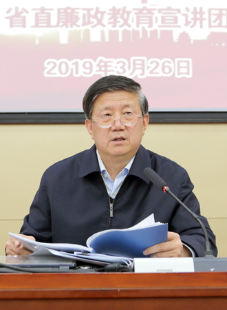 3月26日,山东省直廉政教育宣讲团成员、省纪委省监委原一级巡视员宋晋做客乐动在线登录第19期“泰山讲坛”,作题为“以习近平新时代中国特色社会主义思想为指导 不断推动全面从严治党向纵深发展”专题报告。