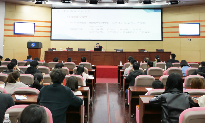 在校期间,吴汉东为我校师生作了一场题为“中美贸易冲突中的知识产权问题”的精彩报告,并参加座谈会,与文法学院师生进行了面对面交流,受到热烈欢迎。(记者:信永华 责编:徐展)