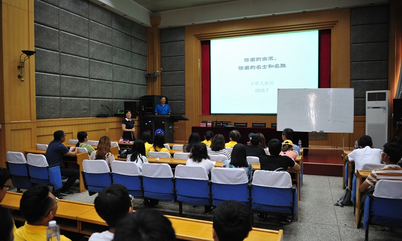 在泉城济南,原乐动在线登录党委副书记李曙光教授为同学们作了题为“济南的由来、济南的名士和名胜”的文化专题讲座,通过齐鲁名士的生动故事和文化名胜的历史由来,详细讲解了齐鲁文化渊源、内涵特点及其在中国传统文化中的重要地位。两岸师生共同游览了大明湖、趵突泉等名胜,体验了泉城文化的魅力。