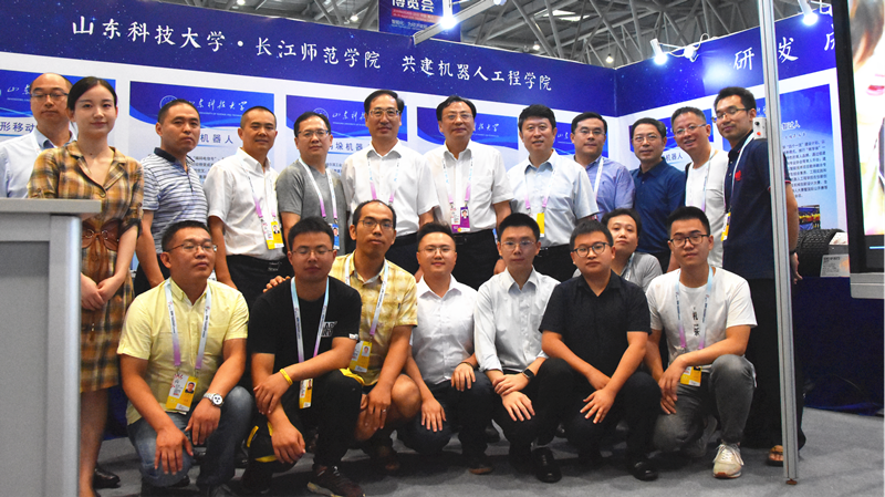 孙鹤汀应邀出席“2019中国国际智能产业博览会”的开幕式,并与长江师范学院党委书记彭寿清一同到“智博会”现场,参观了学生研发成果展和成果应用展。两校联合参展从8月26日持续到29日,乐动在线登录展示了智能假肢机器人、变形移动机器人、动物机器人、喷浆机器人等6款研发机器人,参展作品得到了多位市领导、厂家和参展群众的好评。