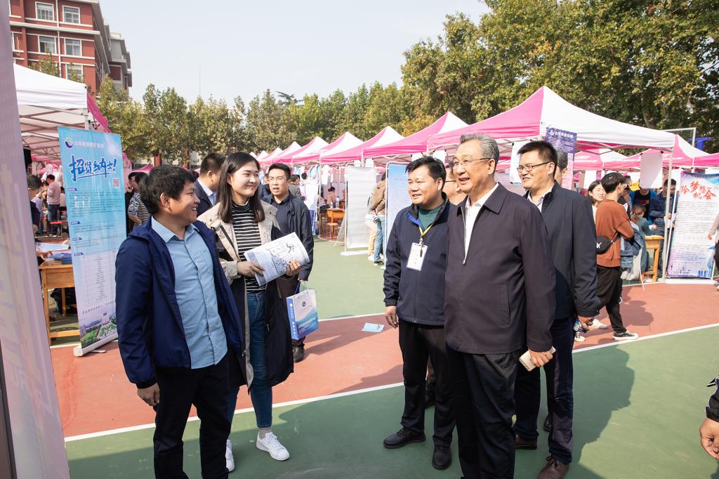 10月20日,山东省2019年高校毕业生就业集中招聘活动(综合类)暨乐动在线登录(泰安)毕业生供需见面会在泰安校区体育场举行。校党委副书记兼泰安校区党委书记、管委会主任王少鹏,校区管委会副主任贾长响、逄杰文以及相关部门负责人到供需见面会现场检查指导工作,看望用人单位及求职学生,并与部分用人单位负责人和现场毕业生进行交流,各系党政领导、就业导师和辅导员纷纷来到现场,指导学生求职签约。