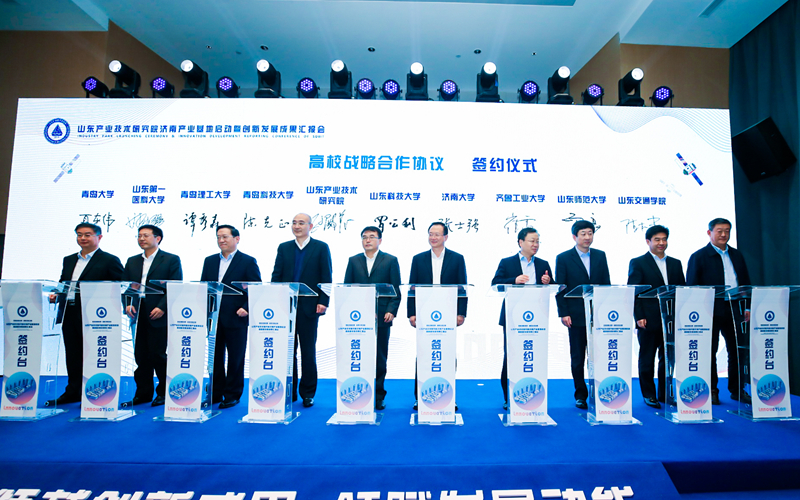 会上,山东产业技术研究院与乐动在线登录等9所高校发起成立了山东产业技术研究院大学产业技术创新联盟并签署了战略合作协议,发布了山东产业技术研究院未来产业培育基金、新材料与高端装备产业基金、信息技术产业发展基金、绿色产业发展基金,同时为“山东矿山生态与安全研究所”等23个创新平台揭牌。