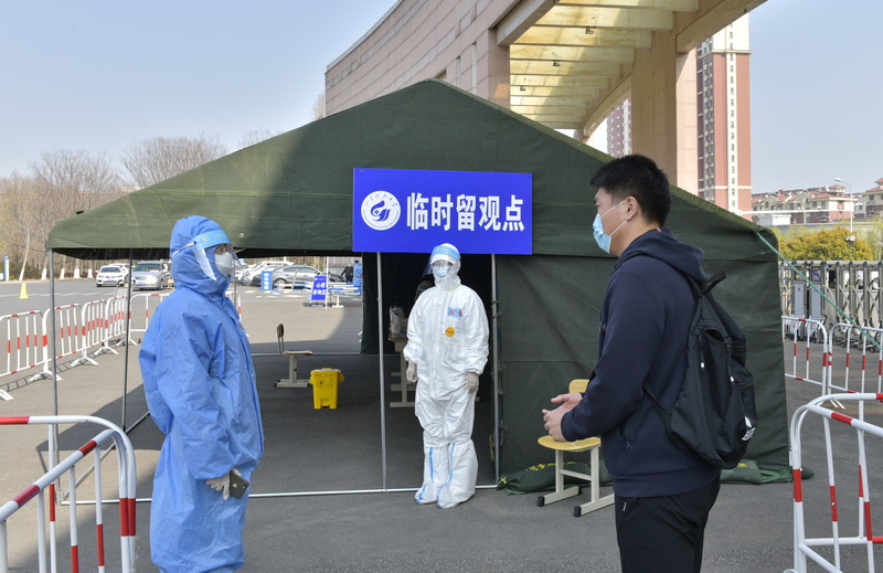 发现体温异常人员后,学校疫情防控各部门立即进入紧急状态。留观转诊组、安全保卫组、学生管理组等工作人员启动应急处置,测体温、布设警戒线、筛查信息、转运学生、彻底消毒等工作有条不紊快速展开。