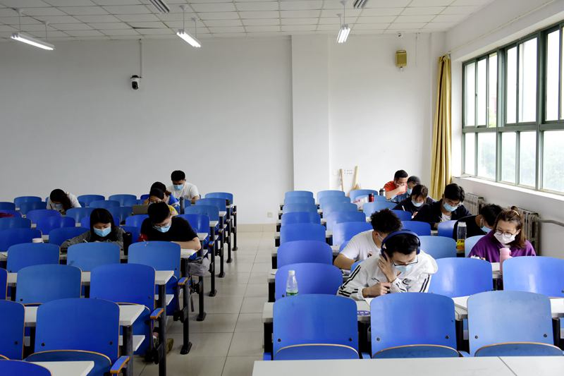 图书馆已经开放了预约系统,返校学生通过提前预约后就可以到馆里借还书、上自习。教学楼一些没有课的教室,学子们也可以上自习。看看下边努力认真的他们吧: