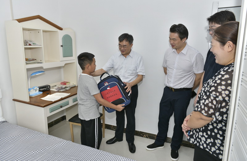 8月21日,副校长高建广一行前往郯城县,实地入户走访了3个已建成的“希望小屋”,看望慰问“希望小屋”受助家庭,向受助儿童赠送了爱心学习礼包等,勉励受助儿童好好学习,早日成才。他表示,“希望小屋”是精准助力脱贫攻坚的重要抓手,是全社会共同的责任,下一步,学校将整合各方资源,汇集多方力量,建设更多的“希望小屋”,同时,也会积极与贫困儿童家庭对接,真正把“希望小屋”建好、用好、维护好,为受助儿童营造良好的成长环境,为决战决胜全面建成小康社会贡献力量。