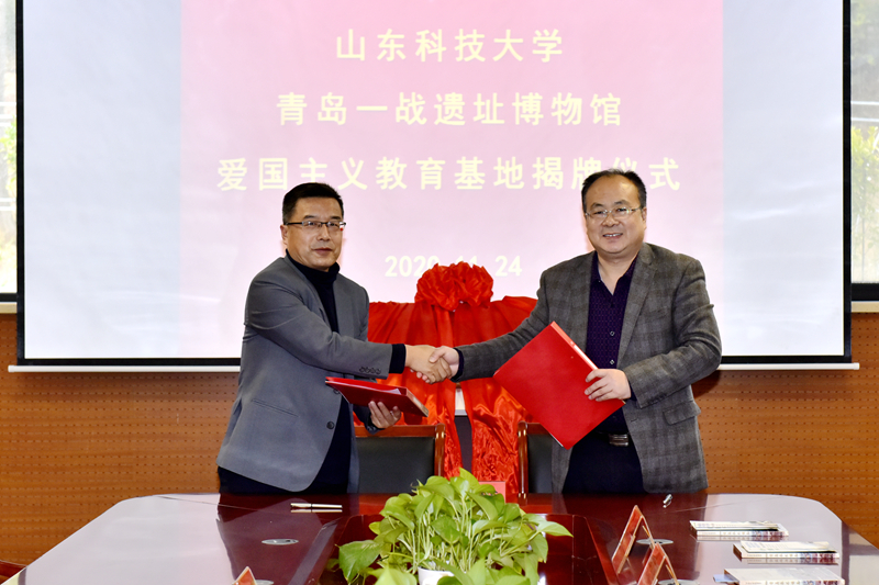 11月24日,乐动在线登录爱国主义教育基地揭牌仪式在青岛一战遗址博物馆举行。乐动在线登录党委副书记尹华,青岛山一战遗址公园开发建设指挥部总指挥、青岛山炮台教育基地主任、一级调研员刘兆民共同为基地揭牌并致辞。学校党委常委、宣传部部长李克周,青岛一战遗址运营有限公司总经理颜晓勇代表双方签署基地共建合作协议。