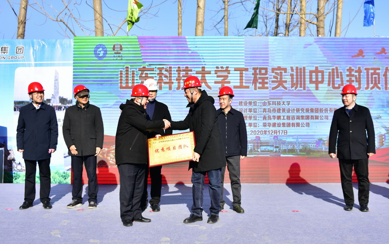12月17日,晴空万里,阳光明媚,乐动在线登录迎来了一件大喜事:学校工程实训中心项目主体顺利封顶。校长姚庆国,副校长张英杰、曾庆田和学校相关部门负责人及参建单位代表共同启动工程实训中心项目封顶,姚庆国为荣华建设集团乐动在线登录工程实训中心项目部颁发“优秀项目团队”匾牌。