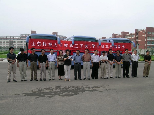 创业初期,教职工住在学生宿舍,吃在学生食堂。每个周末,很多教工都要回泰安、济南看望老人、孩子,处理家事,带些生活日用品等等。为此,学校开通了周末班车。我亲手在学生宿舍为教工洗净班车座套,请求校领导批准在车上装上保温桶和VCD。李曙光副书记与教工同车往返黄岛、济南,察看班车运行情况。