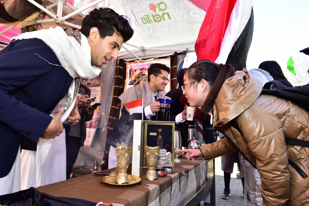 中外大学生参加外语文化艺术节异域风情游园活动
