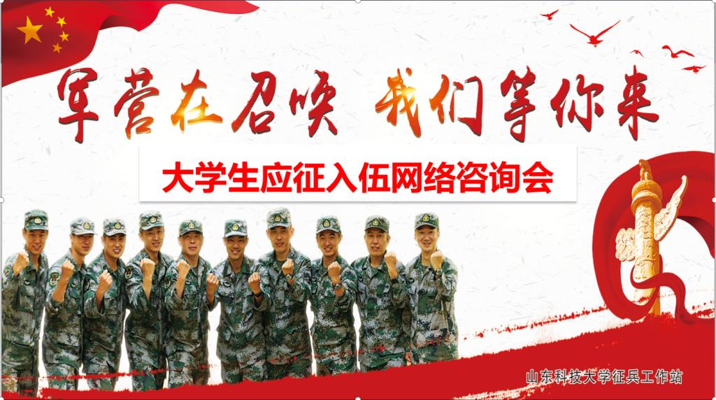 以创新续航,用好新媒体征兵宣传新引擎。学校搭建征兵工作联络员、退役士兵与在校学生的线上互动交流平台,利用“两微一群”即“山科大官微”“科大军鹰”“微信公众号”“2020山科大征兵咨询QQ群”开展线上宣传、咨询工作,累计推送征兵宣传相关文章20余篇,线上累计解答学生问题500余个。打造“圆梦小屋”征兵直播微课堂,以《青春筑梦新时代,携笔从戎报家国》,举办网络征兵访谈活动,发布《大学生参军入伍十问》,推送军种特色宣传推文,《参军报国,无上光荣》征兵宣传片、《大学生参军入伍问题答疑》系列小视频在校园电视、校园网等平台展播,将“关心国防、情系军队、矢志报国、依法服役”的浓厚氛围通过互联网传递到身在家中的每位同学。