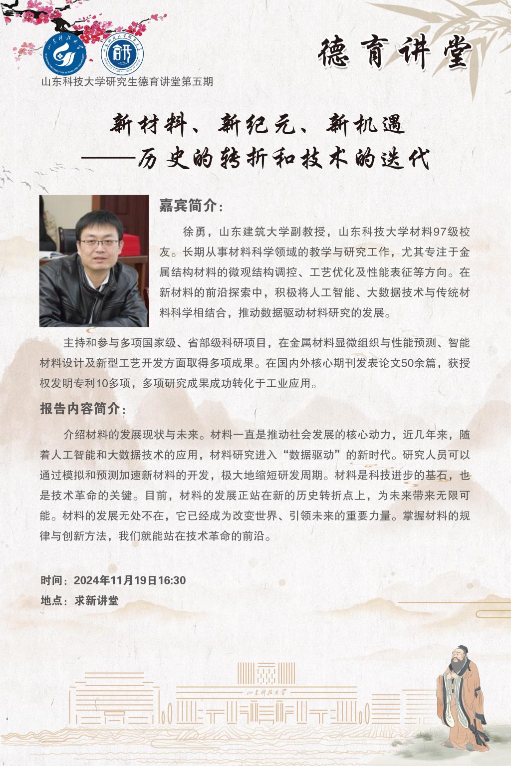 研究生“德育讲堂”2024年第五期:新材料、新纪元、新机遇——历史的转折和技术迭代